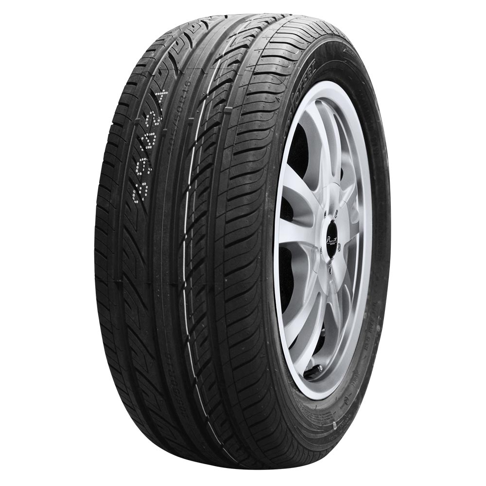 Diseño unidireccional agresivo de la banda de rodadura para una excelente evacuación del agua y reduce el aquaplaneo a alta velocidad.